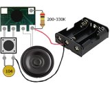 ●概要 ●仕様・機能 58曲メロディが保存されたチップ、電源とスピーカ、0.1uFコンデンサx1個だけを接続すれば動作します、点滅指示LEDと200Ω抵抗はオプション、LED点滅周波数:3…