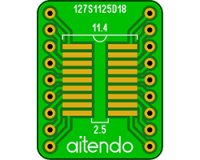 ●概要 ●仕様・機能 ピッチ変換基板、FR-4、すすめっき、レジスタ色:緑色、1.27mmピッチSOP-18、変換先:2.54mmピッチ、DIP-18、スルーホール、φ0.9、穴幅:10.…