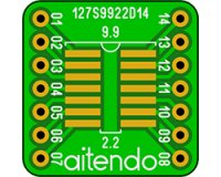 ●概要 ●仕様・機能 ピッチ変換基板、1.27mmピッチSOP-14、変換先:2.54mmピッチDIP-14、スルーホール、φ0.9、ガラスエポキシ、FR4、外形寸法:16.5x19x1.…