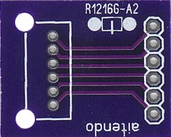 可変抵抗(VR)取り付け用基板単体、VRは付属無し、2.0mmピッチの可変抵抗R1216G-A2に対応、ガラスエポキシ基板、FR4、厚さ1.2mm、外形寸法:20.5x25.8mm、表記価格:1パック=2枚入り