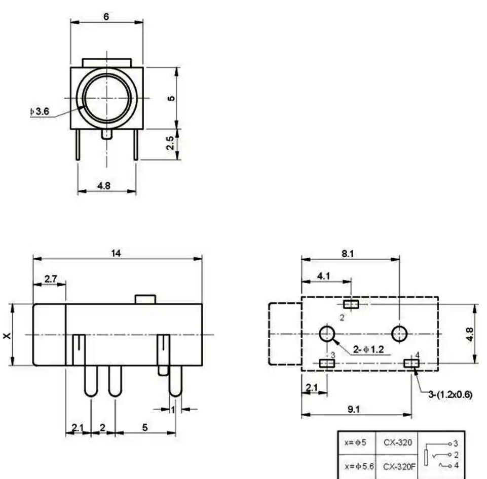 オーディオジャック、ステレオ、基板スルーホール取付用、φ3.5、表記価格:1パック=4個入り