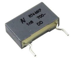 KEMET社製メタライズドフィルムコンデンサ、700V/500V、±5%、ピッチ幅:15mm、容量はバリエーションよりお選びいただける、データシート、表示価格:1