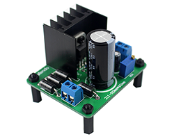 LM317を使った出力可変安定化電源キット、AC-DCコンバータ、詳細マニュアルがついていないので基板シルクや部品配置図面を見ながら作成できる方にお勧め、入力:単AC電源=電源トランス、5〜24VAC、5.08mmピッチ2P端子台、入力12V時実測出力値1.5〜13.8V、基板寸法:60x50x1.2mm、参考回路図、表記価格:1