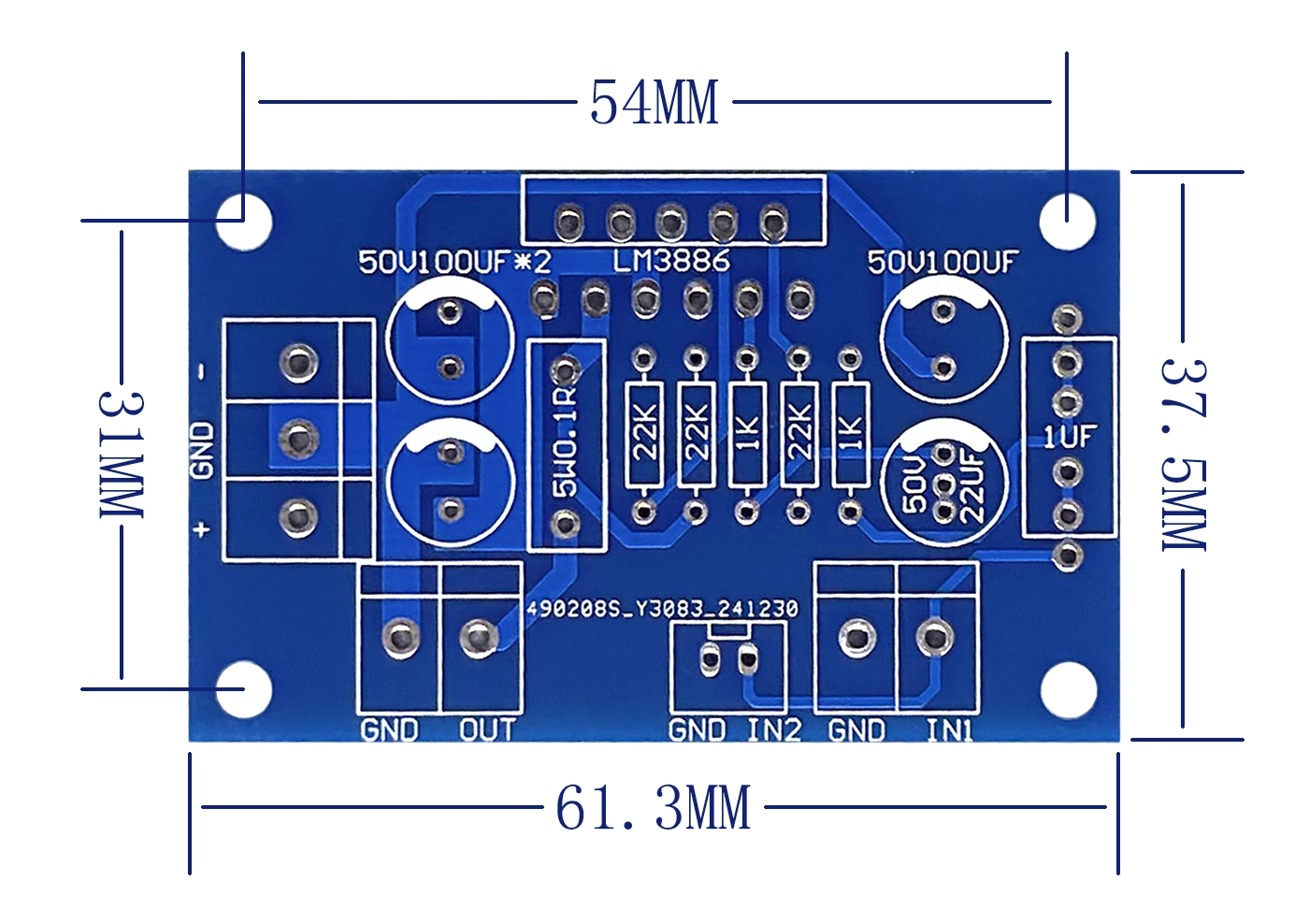★本商品は組立キットで半田付けが必要です★パワーアンプキット、IC LM3886別売、詳細マニュアルがついていないので掲載情報だけで作成できる方にお勧め、基板寸法:61.3 x 37.5 mm、表記価格:1