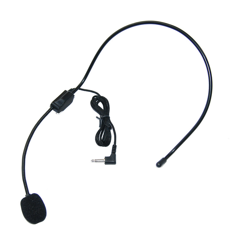 ポータブル多機能拡声器やパソコンなどに対応する単一指向性マイク、ハンズフリー・マイク、φ3.5ミリメートルジャック、トコード:約1m、表記価格:1