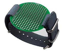 ユニバーサル基板、2.54x2.54mmピッチ、FR-4、両面、すずめっき、スルーホール、φ0.9、外形寸法:50x43x1.2mm、別売腕用バンドUBD2025対応、表記価格:1