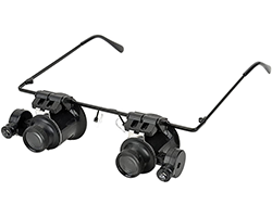LEDライト付きメガネ拡大鏡、倍率:20倍、軽量タイプで疲れにくい、細小部品の組み立てや、検査などの作業にぴったり、動作電源:CR1620 x2本(付属なし)、表記価格:1