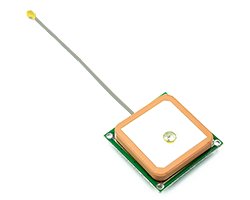 アクティブGPSアンテナ、セラミックパッチ、RFアンプ内蔵、周波数帯域:1575.42±1.023MHz、VSWR:2:1、バンド幅:±30MHz、出力インピーダンス:50Ω、利得:>28dB、MAX 32dB、供給電圧:3〜5V、消費電流:10mA、外形寸法:25x25x8mm、ケーブル長:10cm、コネクタ:U.FL(IPEX)、表記価格:1