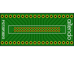 ピッチ変換基板、基板単体、2.0mmピッチ2列x18P(列幅:13mm)と1.27mmピッチ2列x18P(列幅:1.27mm)のストレート変換、ガラスエポキシFR-4、外形寸法:36x16x1,2mm、表記価格:1