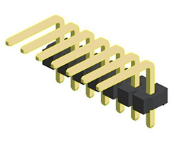 ピンヘッダ、2.54mmピッチ、単列、ライトアングル、寸法(mm):H=2.5、PC=3、PA=6.5、角型ピン、折って任意の長さにして使用できます、バリエーション表記:単列1x極数、表記価格:1