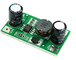 定電流出力DC-DCコンバータXL4001を搭載したLEDドライバ、入力電圧範囲:4.5〜40V、出力:定電流、700±20mA、3WパワーLEDx(1〜10)個直列接続回路に適合、外部PWM信号で明るさを調整することができます、基板寸法:360x20mm、表記価格:1