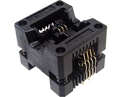 ICソケット単体、OTS-XX(16)-1.27-03シリーズ、適合チップパッケージ:1.27mmピッチSOP、チップ幅(Molded Package Width):3.9mm、極数はバリエーションよりお選び頂けます、データシート、表記価格:1