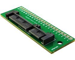 SATAコネクタ変換基板、基板単体、適合コネクタ:SATA22RA-M-P01、変換先:2.54mmピッチ22P、スルーホール、φ0.9mm、基板寸法:58x20x1.6mm、表記価格:1