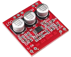 TPA6112A2を搭載したヘッドホンアンプモジュール、入力:差動アナログ入力、出力:バランス出力、16Ω+16Ω負荷駆動、150mw、動作電圧範囲:2.5〜5.5V、基板寸法:25 x 25 mm、表記価格:1
