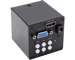 顕微鏡用CCDカメラ、産業用カメラ本体、撮像素子:1/3インチ(CMOS)、画素数:200万画素、最大解像度:1920 x 1080@30FPS、出力:HDMI/VGA、CSマウント、十字線表示機能、動作電源:12V、外形寸法:53 x 53 x 55 mm、表記価格:1