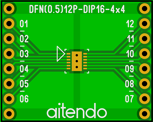 ★0.5/12P★ピッチ変換基板 [DFN(0.5)12P-DIP16-4x4]