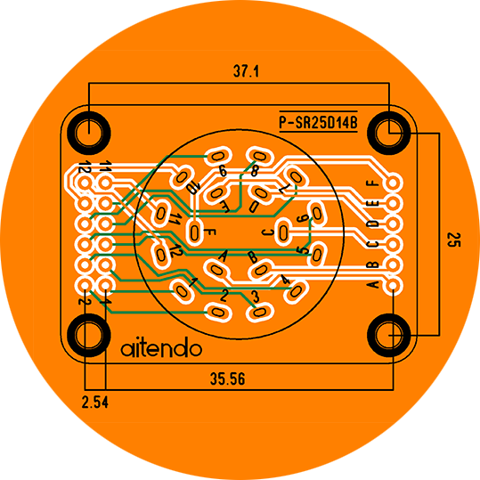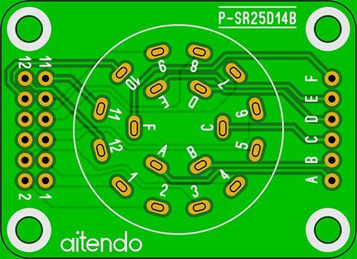 ロータリスイッチ変換基板 [P-SR25D14B] ロータリスイッチ変換基板 [P-SR25D14B] 販売価格: 150円(税別) (税込: 165円) 準備中 返品特約に関する重要事項 お気に入り登録 ●概要 ●仕様・機能 ロータリスイッチSR2512F対応変換基板、変換先:2.54mmピッチ2列x7P、スルーホール、φ0.9mm、基板寸法:44x38x1.6mm、表記価格:1