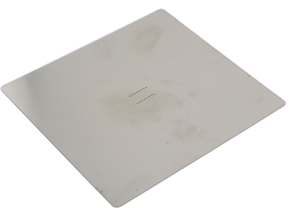 メタルマスク、寸法:93 x03 mm、厚さ:0.15mm。適合パッケージ:SOP16、適合基板:SOP16W500B、表記価格:1
