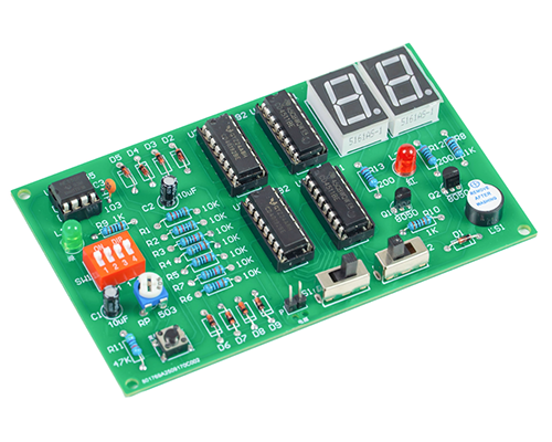 ★本商品は組立キットで、半田付けが必要です★最大90秒カウントダウンタイマキットト、詳細マニュアルがついていないので掲載情報だけで作成できる方にお勧め、動作電源:5V、基板寸法:110 x 66 mm、表記価格:1