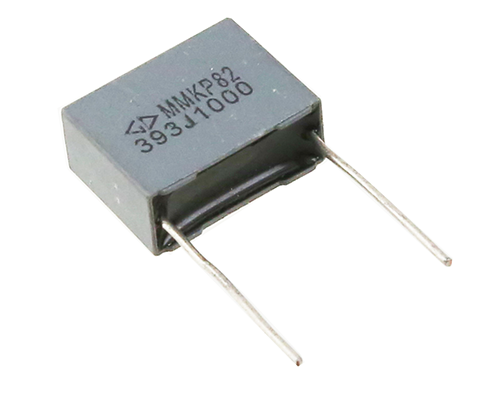 フィルムコンデンサ、MMKP82-393J1000、定格:1000V 393、外形寸法:17.3x7.2x13.5mm、ピッチ幅:15mm。表記価格:1