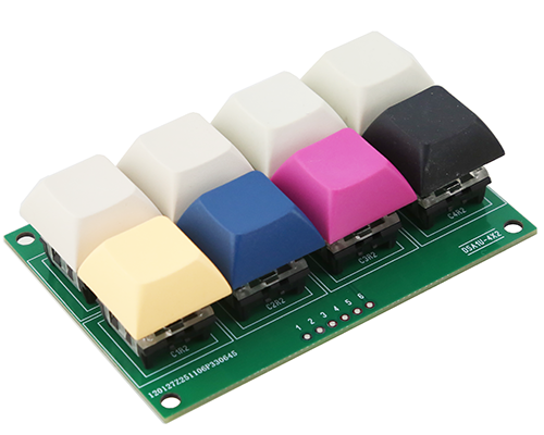 メカニカルK/Bスイッチ基板、基板単体、スイッチ・キャップ別売、4x2マットリックス、接続:2.54mmピッチ、基板寸法:76 x 54 mm、表記価格:1