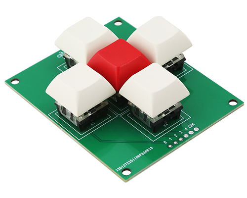 メカニカルK/Bスイッチ基板、基板単体、スイッチ・キャップ別売、5x1マットリックス、接続:2.54mmピッチ、基板寸法:72 x 58 mm、表記価格:1