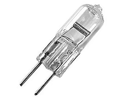 ハロゲンランプ、定格電圧:12v、最大消費電力:5W、外形寸法:φ8 x 22 mm、リード:ピッチ幅4mm、φ0.5mm、表記価格:1