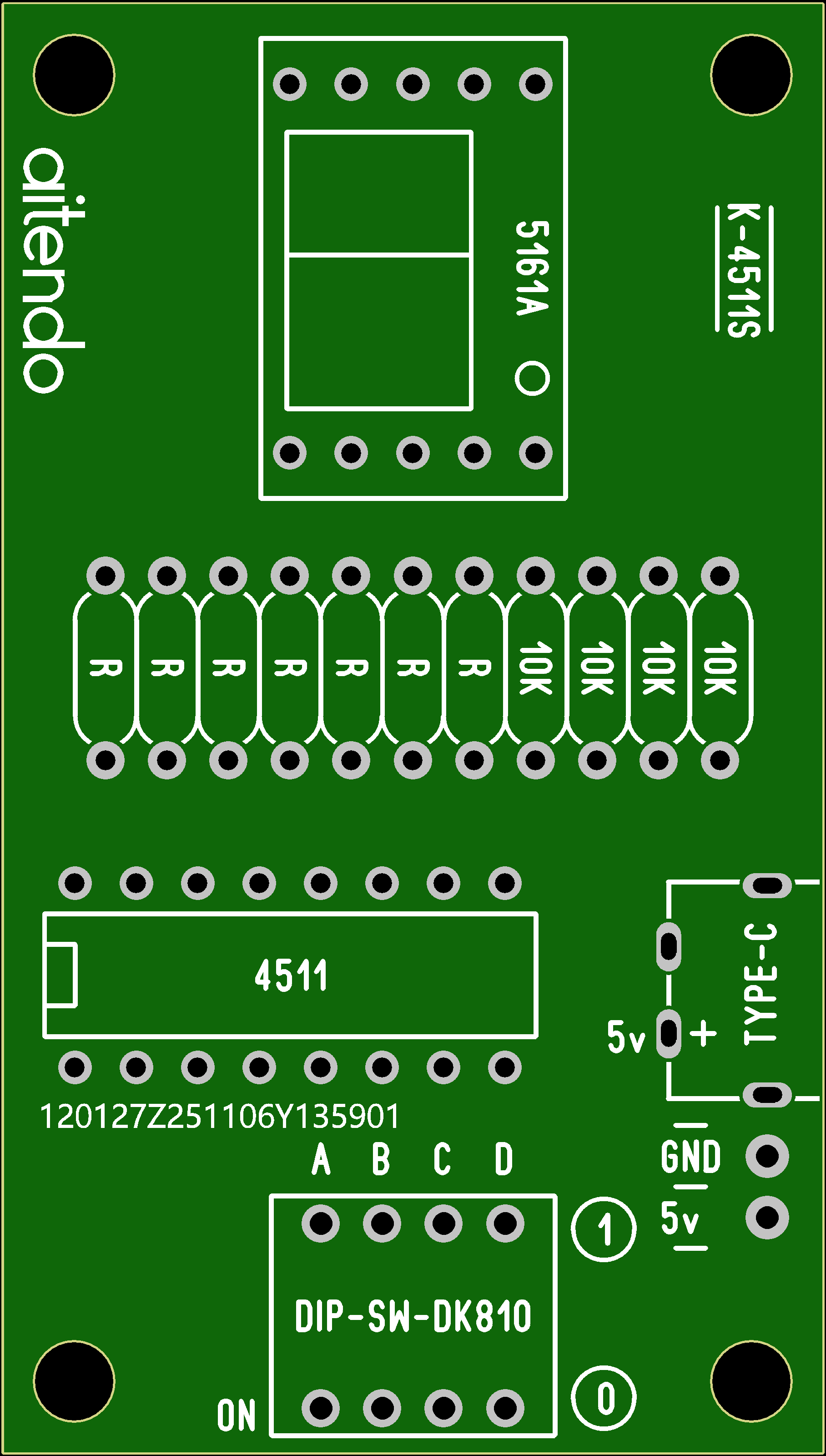 ★本商品は組立キットで、半田付けが必要です★CMOS BCD to 7 セグメントLEDラッチデコーダドライバCD4511を搭載したドライバキット、BCD入力:4桁DIPスイッチ。動作電圧範囲:5〜15V、2通り、’(2)2.54mmピッチ2Pスルーホール、(2)5V、USB TYPE-Cコネクタ、基板寸法:54 x 34 mm、表記価格:1