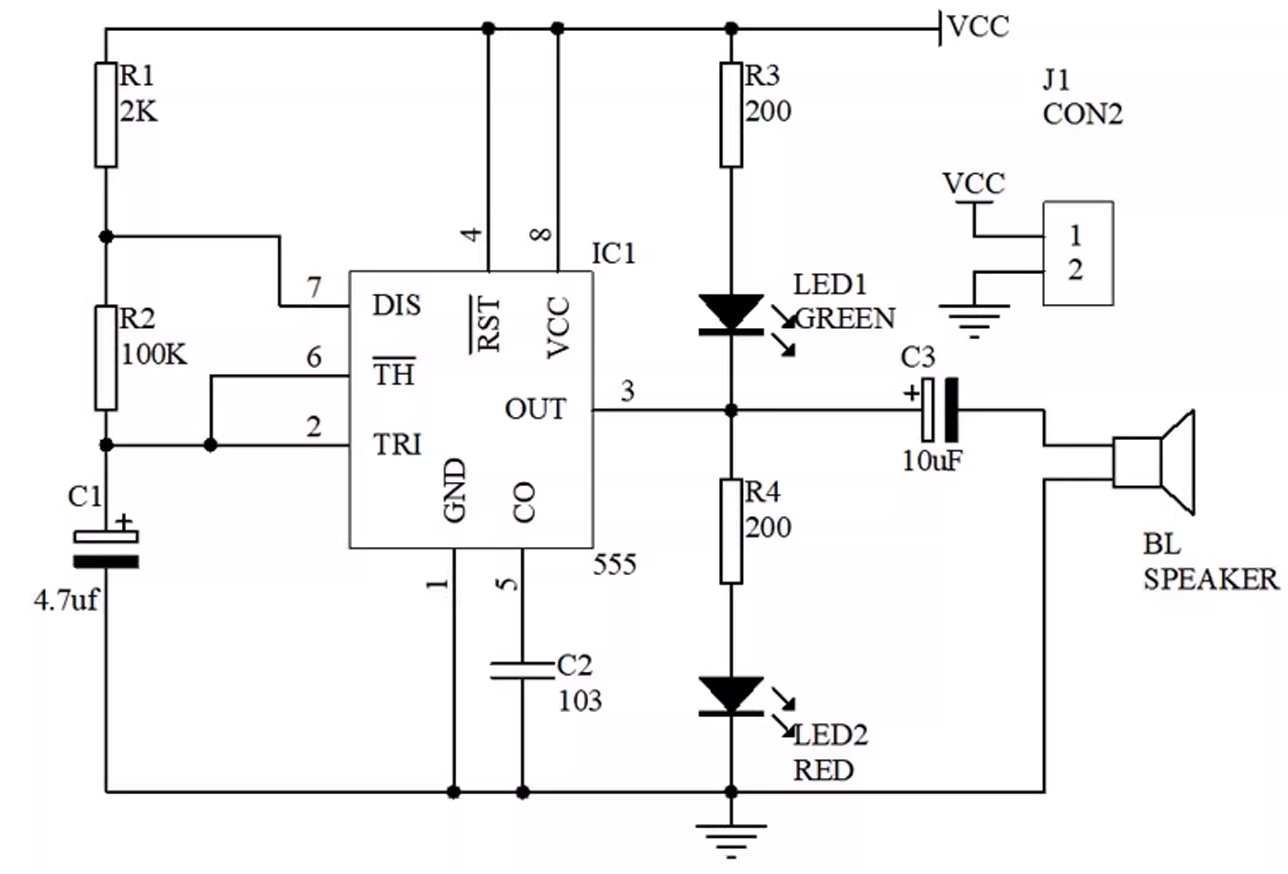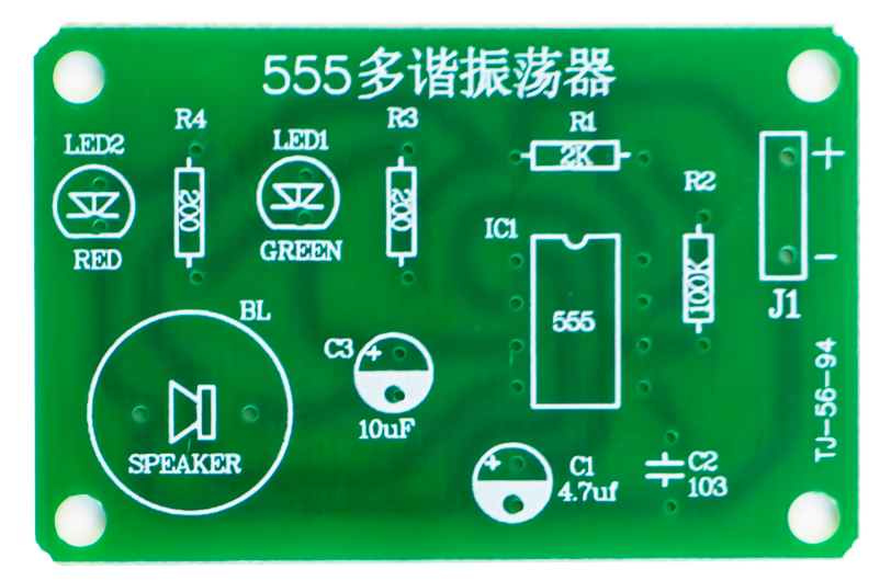 ★本商品は組立キットで、半田付けが必要です★NE555を使った無安定マルチバイブレータキット、動作電源:4.5V、基板寸法:32 x 49 mm、表記価格:1