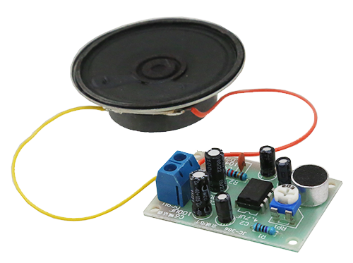 ★本商品は組立キットで、半田付けが必要です★定番の小出力アンプチップLM386を搭載したマイクアンプキット、作りやすい設計、誰でも簡単に作れます。電子工作の入門教材にぴったり、詳細マニュアルがついていないので掲載情報だけで作成できる方にお勧め、電源は別途ご用意ください、出力:250mW、適合スピーカインピーダンス:4〜8Ω、動作電源:4〜9V、推奨:9V、電源の接続:端子台と電池スナップ、基板寸法:45 x 30 mm、表記価格:1