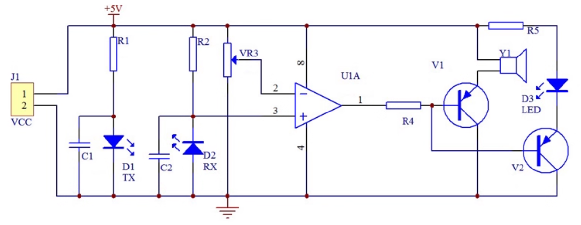 ★本商品は組立キットで、半田付けが必要です★赤外線反射センサキット、反射物が接近すると、ブザーが鳴り、LEDが担当する。半固定抵抗でLM358の閾値を調整することで検出感度を調整することができます、動作電源:5V、基板寸法:53 x 32 mm、表記価格:1