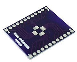 QFN変換基板、材質:ガラスエポキシFR-4、1.6mm、金メッキ、QFN側:0.5mmピッチ24P、変換先:2.54mmピッチ24P、チップボディーサイズ:4.0x4.0mm、外形寸法:1,200x1,000MIL、表記価格:1