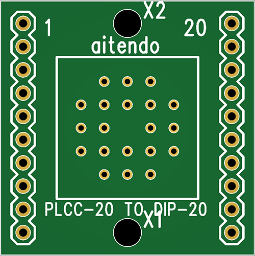 ★本商品は組立キットで、半田付けが必要です★PLCC20ソケットと変換基板の2点セット、ソケットを基板に半田付けして使用する、PLCCソケットのフルピンを2.54mmピッチへストレートに引き出し、ピンヘッダ(別売)を取り付けてブレッドボードに載せられる、:28.2x28.0x1.6mm、基板図面基板寸法、表記価格:1
