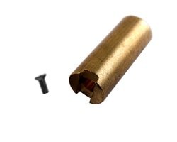 パリコンの延長に特化した銅材スペーサーとネジ(KM1.7X全長5mm)の2点セット、ポリバリコンに「普通のツマミ」をつけたい時に便利な延長シャフト、適合バリコン:(ねじ)M1.7(ねじ全長目安6〜8mm)、勘合部幅:2.4mm以下、表記価格:1セット