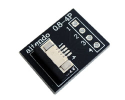 FFC変換基板、FFCコネクタ側:0.8mmピッチ4Pコネクタ、下接続点タイプ、変換先:2.54mmピッチ単列4Pスルーホール、ストレート結線、外形寸法:18.0x13.2x4.0mm、表記価格:1