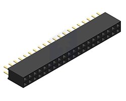 2.54mmピッチピンソケット、2列、全高:8.5+3.2mm、樹脂部の高さ:8.5mm、角ピン:0.4x0.62mm、樹脂部幅:5mm、総極数=2列x単列極数、表記価格:1